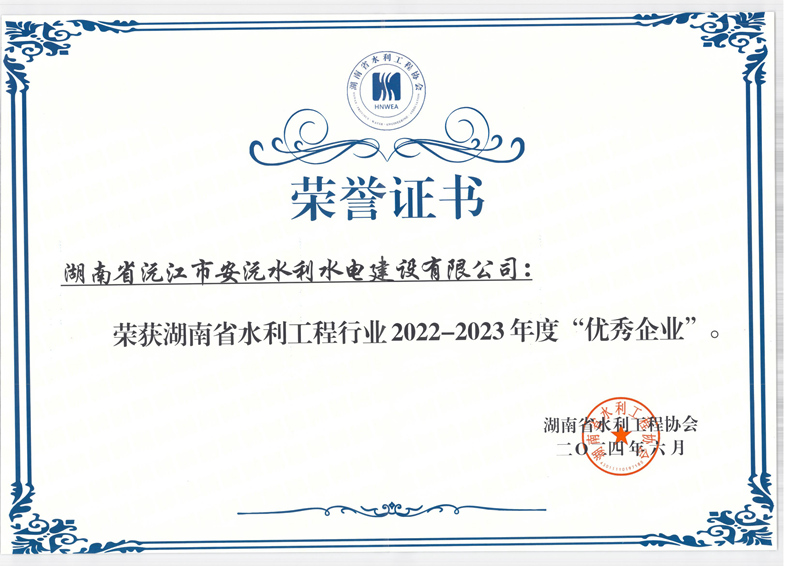 - 2024-06-29 安沅公司荣获湖南省水利工程行业“优秀企业